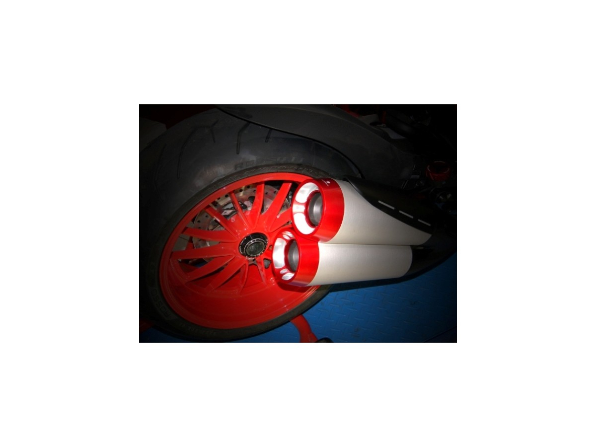 The bottom exhaust from DUCABIKE is proceeds from billet alloy anodizing colored surface.