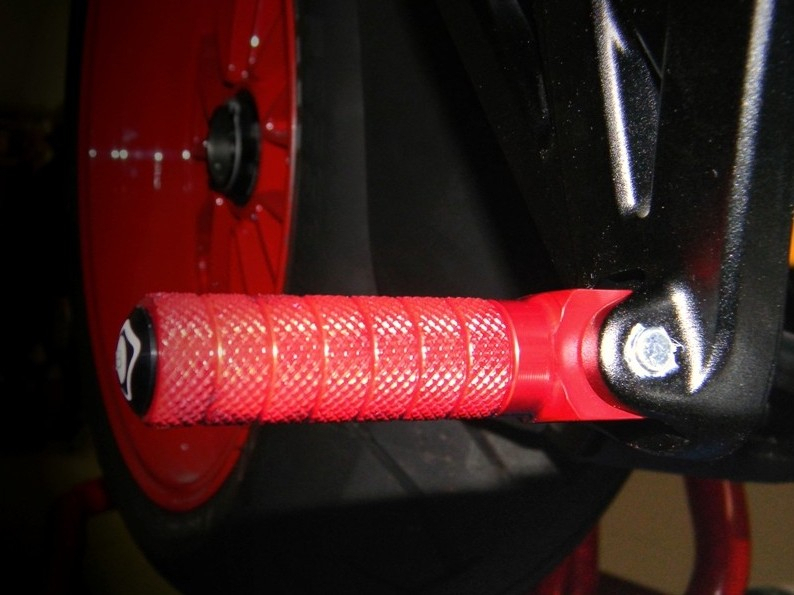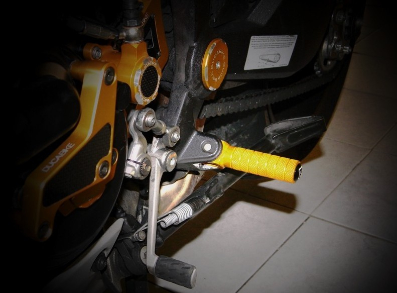 The adjustable rearset from DUCABIKE is billet alluminium (ergal), surface color anodizing.
