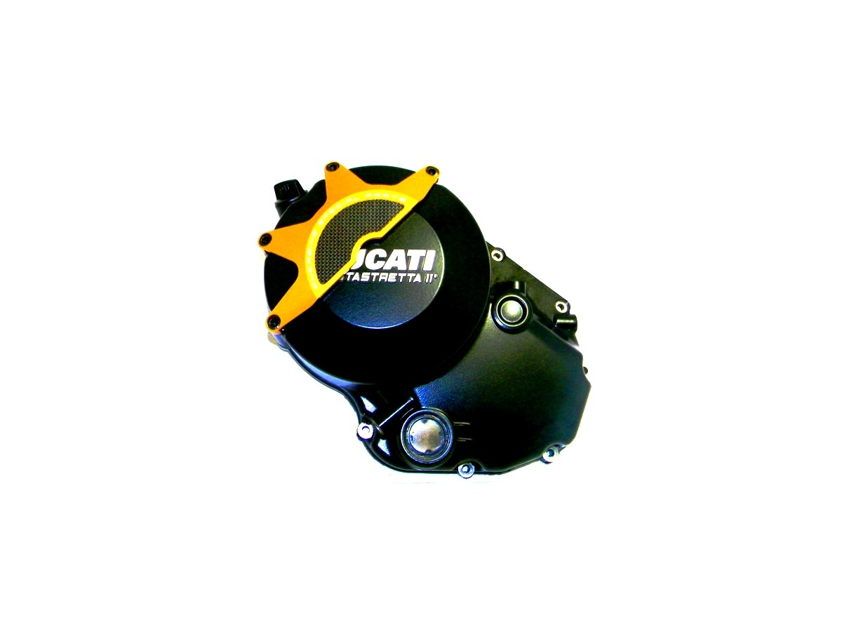 The Diavel clutch cover wet from DUCABIKE is anodized colored, made from a solid block of aluminum with carbon fiber application.
