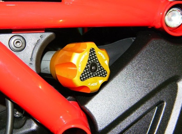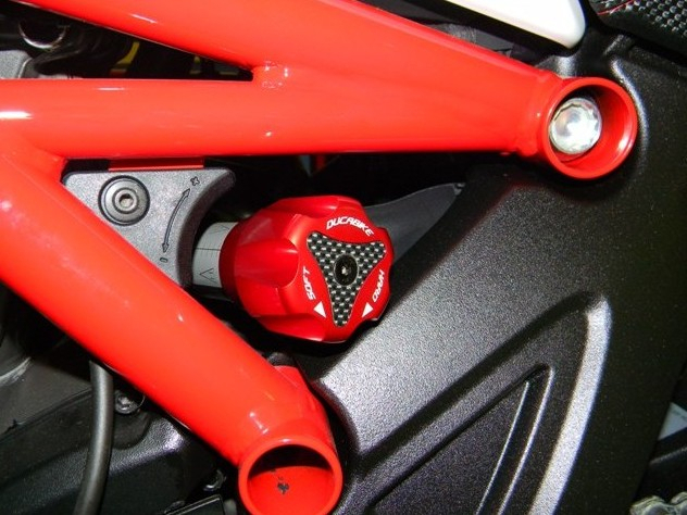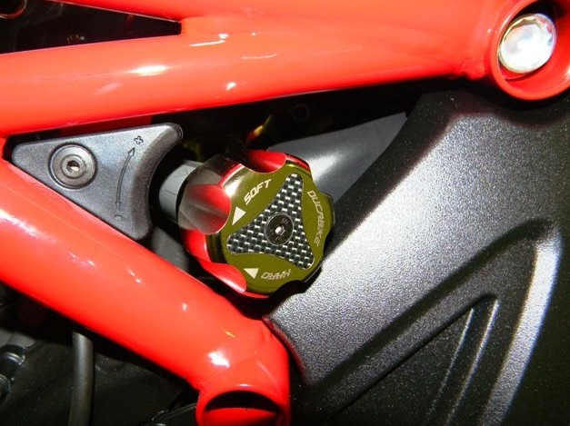 The Diavel pivot adjustment from DUCABIKE is billet aluminium, colored anodized surface with application of carbon fiber.